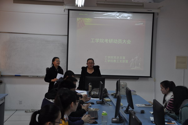 2014年4月2日12点,工学院考研动员大会在明华楼360召开。工学院党总支书记刘香连、教工党支部书记周丽婕出席了大会,工学院11级有考研意向的20多名学生参加了会议。 会上安排了考研学生复习教室,并根据专业指定了辅导教师,刘老师还结合往年考研情况,对同学们提出了宝贵意见,这些都对工学院的学生考研有实际帮助。 |