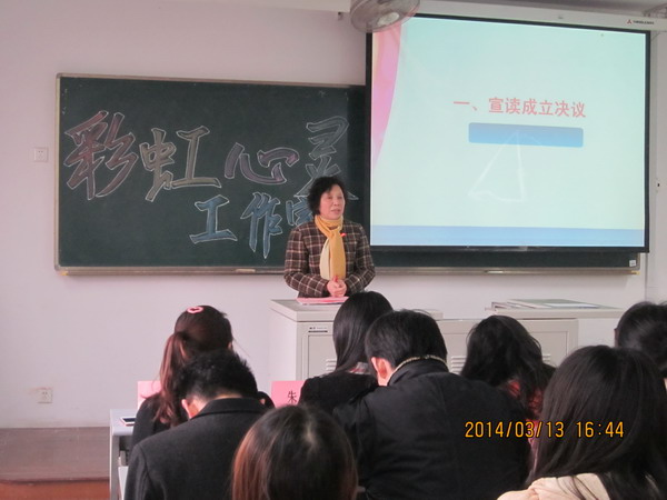 | 2014年3月13日下午16:30,教育与艺术学院教育党总支在日华楼121教室举行“彩虹心灵”工作室启动仪式暨“320”(咱爱您)心理健康周动员会。学校党委书记助理凌琦、教育与艺术学院教育党总支书记沈晓燕、教育党总支副书记韩苏曼、教育分团委书记朱可、健康学院心理学专业教师代维祝,以及教育类专业各专职辅导员、心理委员参加仪式。“彩虹心灵”工作室指导老师周丹妮主持。 | ||