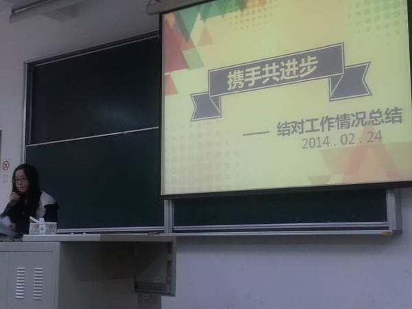 2014年3月11日,语言文化学院学生党建中心召开本学期第一次党员及入党积极分子“结对子”经验交流会。语言文化学院党总支副书记周建文、蔡勇永,语言文化学院党建中心常务主任翁晓玲,德语专业党支部书记曹占侠,英语专业杨燕玲老师及全体学生党员、入党积极分子出席了会议。 会上,语言文化学院五个专业的学生党员代表首先进行了“结对子”的经验分享。接着,党建中心常务主任翁晓玲对五位同学的发言作了点评,提出了具体工作要求,并下发了结对子每周记录表。最后,语言文化学院党总支副书记蔡勇永和周建文分别作了总结,要求党员及入党积极分子做好带头作用,要有奉献精神,认真做好“结对子”的工作。(语言文化学院) |