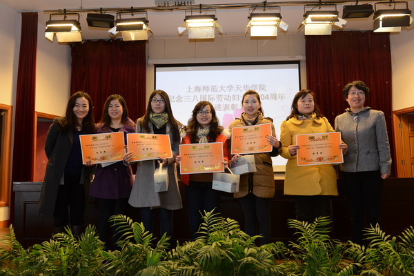 | 2014年3月7日中午,学校工会、妇委会于明华楼五楼报告厅隆重召开上海师范大学天华学院纪念“三•八”国际劳动妇女节104周年暨先进表彰大会。学校党委书记韩晓玉、党委副书记兼工会主席许岳出席会议,工会常务副主席兼妇委会主任曹卫主持会议。 | ||