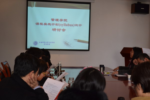 2014年1月3日下午,管理学院“课程实施计划(syllabus)设计”教学改革研讨会在日华楼一楼商务谈判实训室隆重举行。