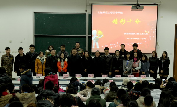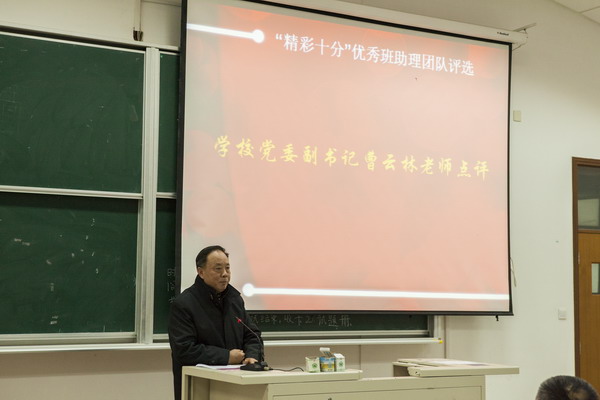 | 2013年12月25日下午,学保处在日华楼阶梯教室402举行班助理工作“精彩十分”演讲比赛。校党委副书记、学保处处长曹云林,校质量管理处督学贾长宽,委组织部部长周凯波,学保处副处长刘天翔以及各二级学院党总支书记担任评委。各二级学院班助理负责老师、13级全体班助理和13级新生部分班干部出席。校班助理负责人华芸老师主持。 | ||