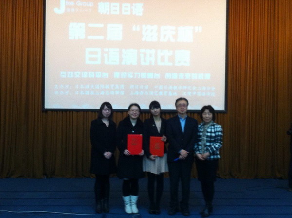 2013年12月15日,语言文化学院日语专业2011级学生王婷婷参加了第二届“滋庆杯”日语演讲比赛表现出色,荣获优秀奖。 本次比赛由滋庆投资咨询上海有限公司、上海朝日教育管理集团、中国日语教学研究会上海分会主办,日本国驻上海总领事馆、同济大学、上海外国语大学、复旦大学、华东师范大学、上海交通大学等协办,共有22所上海地区高校参加。本次大赛的主题是“我的梦想”。在演讲台上,各参赛选手运用娴熟的日语畅谈各自的梦想,行文流畅、发音标准,赢得了在场观众的阵阵掌声。在自由问答环节,选手们面对评委提问,机智的回答也给观众留下了深刻印象。 这次比赛得到了语言文化学院领导的重视,该院学术委员会副主席吴素莲、日语专业主任张丽�及指导教师秦嘉出席了大赛现场。在参赛准备过程中,日语专业外籍教师深井�雄先生也积极参与了学生的指导。(语言文化学院) |