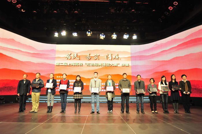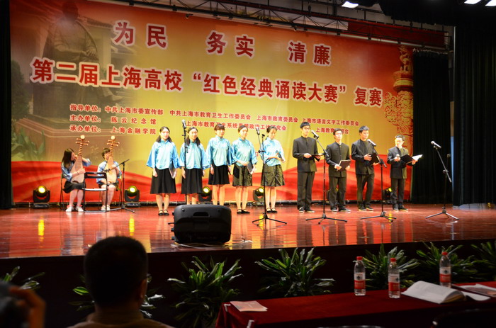 2013年11月24日,“为民、务实、清廉―第二届上海高校红色经典诵读大赛”电视决赛,在上海教育电视台举行。 在此前的10月19日,由上海金融学院承办的复赛中有11所高校参加,我校宣传部和语言文化学院联合选送的参赛队伍参加了复赛,学校获得了优秀组织奖和集体组参赛奖,12级汉语言文学专业章殷淼同学荣获个人组参赛奖。 |