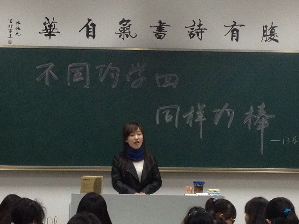 2013年11月19日晚,教育与艺术学院教育党总支党建中心在日华楼5楼教育类专业2013级各班固定教室,组织2010级优秀学生与2013级新生进行“老生学习经验交流会”,特别邀请了2010级钟乃夫、杨小力、陈曦雨等6位各方面表现特别优秀的大四学生向刚进校的学弟学妹们讲述自己在学校的学习生活、成长困惑和经验教训。同时,他们还对教育类专业特有的技能课《钢琴基础》、《美术基础》、《试唱练耳》、《乐理》等专业课程交流了自己的心得体会,引起了同学们的共鸣。最后的互动环节精彩纷呈,学长学姐的真诚分享赢得了一阵阵热烈的掌声。 此次活动作为教育类专业“学风建设月”活动之一。通过学习经验交流会营造了优良的学风氛围,加深了新生对本专业的理解,明确了努力的方向。(教育与艺术学院) |
