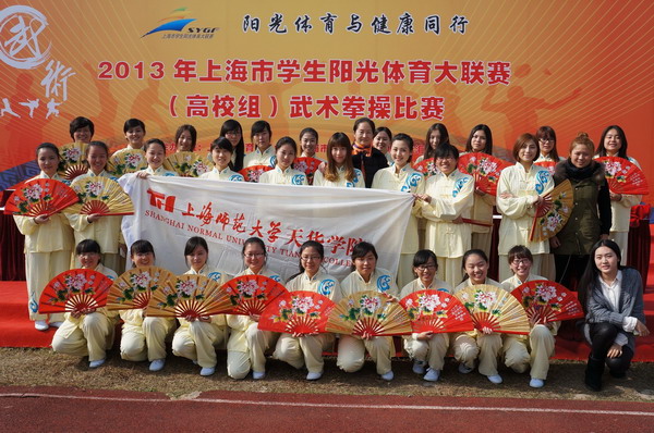 2013年11月16日,上海市大学生阳光体育大联赛武术拳操比赛在上海中医药大学举行。我校功夫扇队在通识学院副院长裔勇刚老师、院长助理张云老师的支持与关心下,由体育教学部答英娟老师和程志伟老师指导和带队参加比赛,在与华东师范大学、上海中医药大学、上海师范大学等近20支队伍的角逐中,天华武术队――功夫扇队最终摘得功夫扇项目团体一等奖。我院12级旅游管理1班何紫薇同学获“优秀运动员”称号。 |