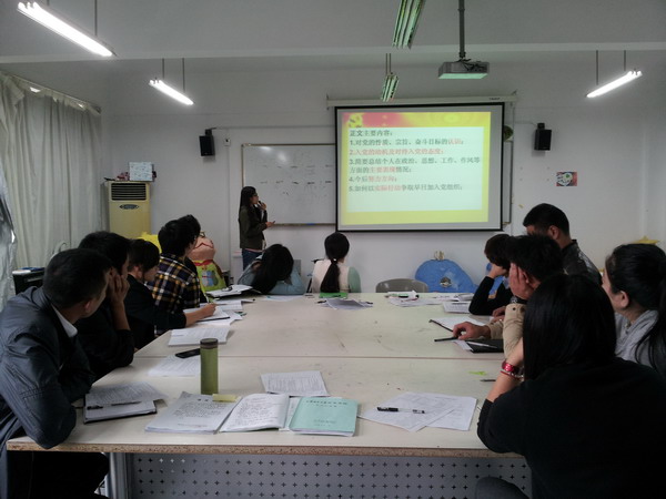 | 2013年10月21日下午,教育艺术学院教育党总支在明华楼442手工教室召开了落实党的群众路线教育活动――正副辅导员“党务工作学习会”。教育类专业全体正副辅导员参加会议。教育党总支副书记韩苏曼老师就发展党员程序及注意事项进行了讲解。 | ||