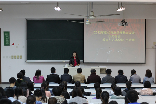 | 2013年10月16日下午,学保处在日华楼阶梯教室302隆重举行冯水康优秀班助理年度表彰大会,表彰了2012-2013学年优秀班助理。大会还邀请了党委宣传部部长齐砚奎为班助理开展党的群众路线专题教育活动。学院党委副书记、学保处处长曹云林,学保处副处长刘天翔、学保处处长助理周建文、包静波,各二级学院班助理负责老师及200多名12级、13级班助理参加会议。校班助理负责人华芸主持。(学保处) | ||