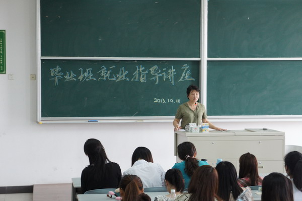| 2013年10月11日中午12点,教育与艺术学院教育类专业在日阶301教室举行了2014届毕业生就业指导讲座,就业办主任吴莺老师主讲,教育类专业10级各班辅导员和全体2010级学生参加。吴老师重点讲解了毕业生推荐表填写的要求以及注意事项,详细介绍了四联单(就业协议书)签订的必要性和重要性,提醒毕业生在签订就业协议时应注意的要点。通过讲座,同学们更清楚地了解了目前的就业形势,并开始积极做好就业的相关准备。 | ||