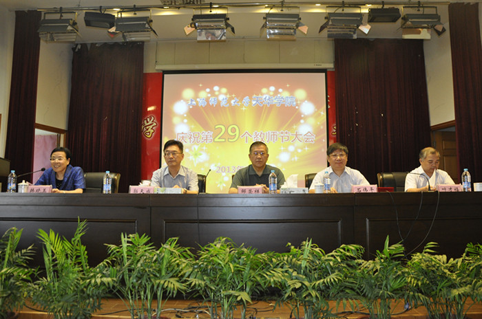 | 2013年9月9日上午,我校在明华楼五楼报告厅举行了第29个教师节庆祝大会。董事长邹荣祥、总校监郭天成、校长石伟平、党委书记韩晓玉、常务副校长叶才福在主席台就座,全体党政领导干部和教职员工出席会议。党委书记韩晓玉主持。 | ||