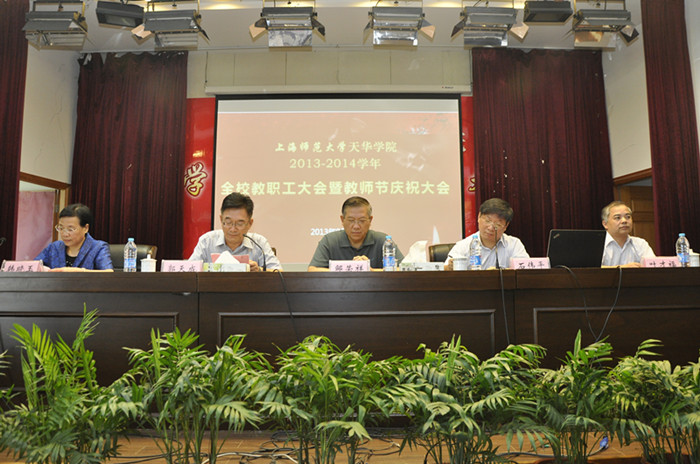 | 2013年9月9日上午,我校在明华楼五楼报告厅和会议中心召开了2013-2014学年度第一学期全校教职工大会。董事长邹荣祥、总校监郭天成、校长石伟平、党委书记韩晓玉、常务副校长叶才福在主席台就座,全体党政领导干部和教职员工出席会议。总校监郭天成主持会议。 | ||