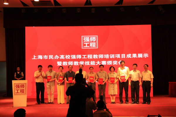 2013年9月6日上午,上海市教委在上海师范大学举行“上海市民办高校强师工程教师培训项目成果展示暨教师教学技能大赛颁奖大会”。在第一届民办高校教师教学技能大赛中共有36名青年教师和骨干教师脱颖而出获得奖项,其中优胜奖17名,三等奖11名,二等奖4名,一等奖3名,特等奖1名。我校有6名教师获奖,其中黄蔚夺得本次大赛唯一一个特等奖,黄毅获得骨干教师组二等奖,孙叶青、盛术俊、张葵获得骨干教师组优胜奖,汤莹获得青年教师组优胜奖。包括我校在内的8所民办高校获优秀组织奖,党委书记韩晓玉出席颁奖大会并上台领奖。 |
