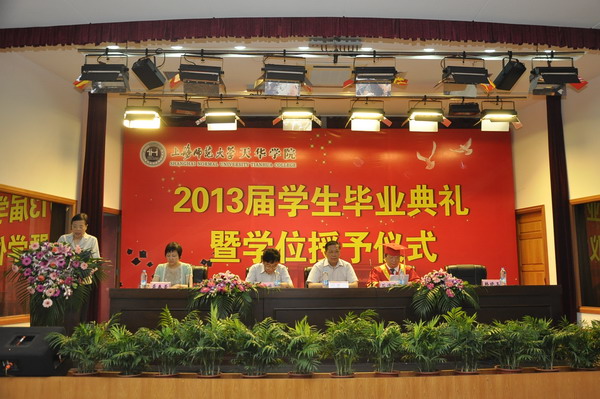 | 2013年6月20日,我院隆重举行2013届毕业生毕业典礼暨学士学位授予仪式。上海师范大学天华学院董事长邹荣祥、党委书记韩晓玉、院长石伟平、总校监郭天成及副院长龚春蕾等出席会议,典礼由学院副院长龚春蕾主持。我院全体党政监领导、各系主任、党总支书记、各行政处室负责人及836名毕业生代表出席。 | ||