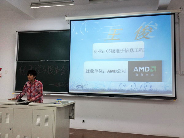 为响应学院学风建设活动的号召,2013年5月23日下午我院电信系特邀2005级电子信息王俊、2008级通信工程沈嘉尉以及2009级卜凡宇三位优秀学子,在日阶102举办优秀学子报告会。出席活动的有电信系团总支书记金玫,辅导员周欢,副辅导员彭刘刚及电信系2010-2012级学生。活动由金玫老师担任主持。 报告会主要由三位优秀学子分别从大学生活、就业方向及社会阅历等方面向在座同学进行交流。卜凡宇同学就大学期间如何学会树立目标,明确学风建设的重要性展开交流;沈嘉尉同学主要以一名商人的身份教会学生大学毕业后如何正确认识和看待“赢”的理念,明确就业方向;王俊同学以个人考研至从事专业有关的工作经验为同学们敲响了如何好好学习专业知识的警钟,分享了大学学习与就业心得,为我系学子更好地明确了未来就业方向并提出了宝贵意见,展现了他乐观进取的人生追求。报告会上优秀学子们的演讲使得在场同学们备受鼓舞。 (金玫) |