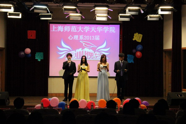 2013年5月8日晚,心理系于报告厅举行“毕业礼第二届暨2013届毕业晚会――四季如歌”,院长助理、党政办公室主任谢吕法,心理系系主任杜晓新、常务副主任王茜及心理系师生出席晚会。 晚会共历时2个多小时,以“四季如歌”为主题,通过四季的变换交替呈现出大学生活的多姿多彩。形式多样、内容丰富的精彩节目让晚会现场充满了欢声、掌声,老师们也表演了精彩的节目,道出了对毕业生的深深祝福,常回家看看。晚会中同学们的毕业视频让大家再次回忆起美好的大学时光。最后,毕业生们表达了对母校、对老师的不舍与感谢,以及对学弟、学妹们的祝福。本次晚会在毕业生们的大合唱中圆满落幕。(心理系) |