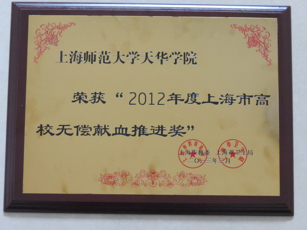 我院获得“2012年度上海市高校无偿献血推进奖”
