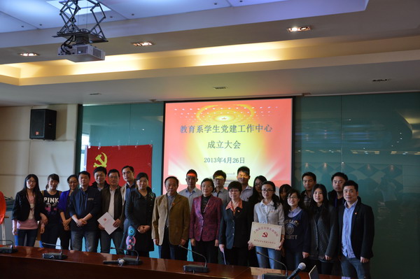 2013年4月26日下午,教育系在明华楼5楼会议中心举行党建工作中心成立大会。学院党委书记韩晓玉,党委副书记、学保处处长曹云林,教育系常务副系主任夏明烨,党委委员孙叶青、齐砚奎,纪检委委员符跃鸣,学保处副处长周烨刚、刘天翔及教育系党支部书记和各学生党支部的教师、学生党员代表参加成立仪式。由教育系、心理系联合党总支书记沈晓燕主持。 |