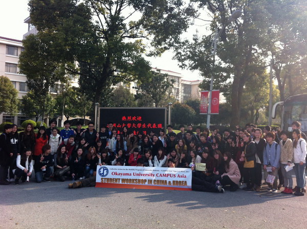 2013年3月18日下午,日本�山大学学生代表团一行乘坐大巴来到我院,与我院学生进行友好交流。