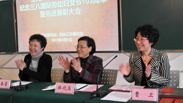 2013年3月7日中午,学院工会、妇委会在明华楼五楼演播室举办了“魅力天华 巾帼添彩”庆祝活动暨先进表彰大会,以响应上海市教育系统妇工委、女工委及学院党委的号召,欢庆“三八”国际劳动妇女节第103周年。党委书记韩晓玉、副院长龚春蕾、工会常务副主席曹卫等领导,以及全院妇女代表、部分女学生代表出席会议。 |