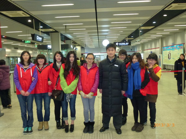 2013年3月3日,学院教育系团总支学生会发起了“学习雷锋好榜样,传递青春正能量”的活动,组织系学生会外联部志愿者在地铁11号线嘉定北站做志愿服务。学生志愿者们以饱满的热情帮助行人提行李箱到安检机器,对遇到问题的行人进行帮助;在刷卡处维护进出站秩序;在上下地铁处提醒行人在黄线内候车,注意文明乘车;向不熟悉路况的行人提供帮助,进行简单引导。活动从8:30持续到中午11:00,在繁忙的地铁站中我们的志愿者身着红色马甲,面带微笑穿梭于地铁站中成为地铁站里一道亮丽的风景。 此次活动是教育系团总支学生会为了响应学院号召而举办的,旨在加强学习“雷锋精神”,真诚服务他人与社会。通过志愿活动,学生们主动承担社会责任,积极传承乐于助人的优良品质,传递了正能量。(教育系) |