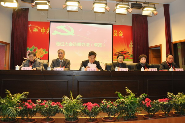 2013年1月15日中午,党委在明华楼五楼报告厅召开换届选举党员代表大会预备会议,党委换届工作领导小组组长郭天成主持会议,副组长邹荣庚、韩晓玉,组员曹云林、顾绍元,党委副书记、代表资格审查小组组长龚春蕾等同志在主席台就座。 |