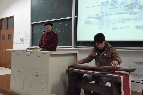 2012年12月11日,伴随着《时间简史》导读讲座现场的阵阵掌声,本学期经典导读系列讲座结束。12月13日晚,由国学院副院长、通识教学部主任祝亚平主讲的《古琴历史流派及入门基础》在教育系周磊老师弹奏的古琴曲《关山月》中结束。至此,本学期我院通识讲座圆满落幕。 |