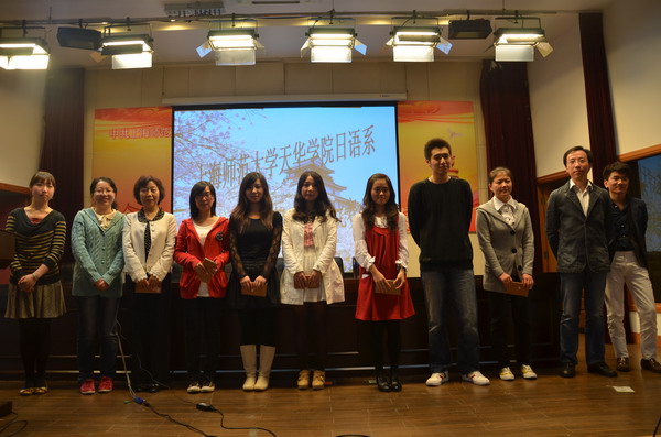 2012年10月29日晚,日语系师生齐聚明华楼五楼报告厅举办第八届日语演讲比赛。日语系常务副系主任吴素莲及日语系教师秦嘉、全中元、余颢和张丽�等担任评委。比赛的题目是《私の宝物》,经过激烈角逐,最终马嘉莉、黄�璇和王婷婷同学分别摘取了四年级组、三年级组和二年级组的冠军。 此次比赛共有来自日语系三个年级的16名同学参加,参赛选手进行了精心准备,带来了精彩的演讲,激发了学生的学习热情。演讲结束后,吴素莲主任向同学们介绍了赴日研修的相关情况,曾在日本龙谷大学进修的全中元老师介绍了该校的基本情况,分享了自己的所见所闻。(日语系) |