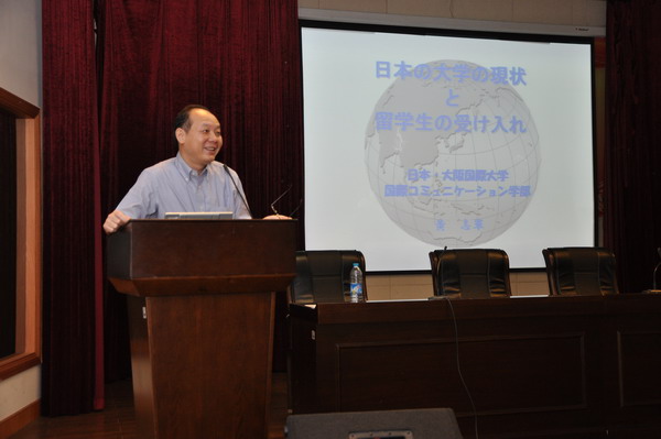2012年9月21日,日语系特邀大阪国际大学黄志军教授作专题讲座。日语系2010、2011级学生参加。 黄志军教授详细介绍了日本大学的现状以及中国大学生赴日留学的有关事项,包括申请阶段、考试阶段和留学阶段的具体操作流程和注意事项。黄教授还就播放了留学生在大阪国际大学的留学情况视频,并回答了学生们的提问。 黄志军教授现任大阪国际大学国际交流学部主任,2011年9月被聘为上海师范大学天华学院日语系客座教授。(日语系) |