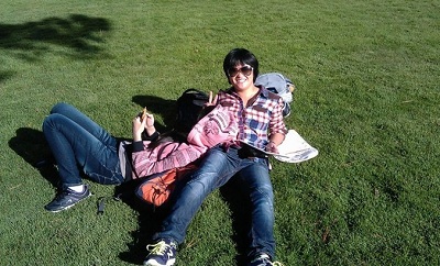 | 2名学生在旧金山州立大学校园草坪上掠影 | ||
