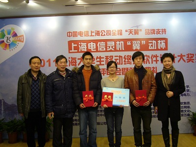| 2012年3月17日,我院计算机系学生团队参加了上海电信“灵机翼动杯”上海大学生移动终端软件设计大奖赛决赛,最终与复旦大学、东华大学学生团队并列荣获一等奖。 | ||