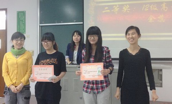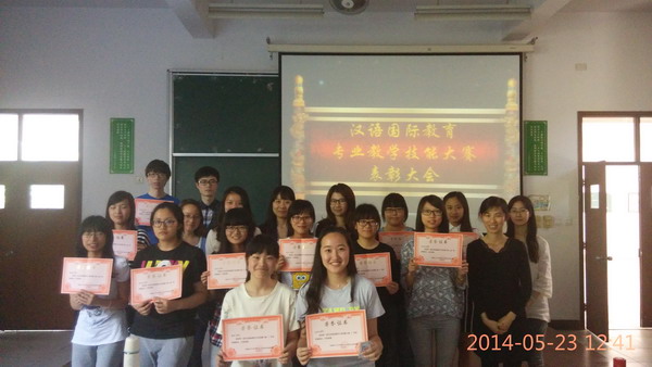 2014年5月23日,语言文化学院“第三届汉语国际教育专业技能大赛总结暨表彰大会”在日阶103隆重举行。语言文化学院副院长陈再阳,汉语国际教育党支部书记翁晓玲,分团委书记杨央,以及曹占侠、甘小明、张文庭、朱雯雯、张文娟、虞琪君等老师出席本次大会。会议由翁晓玲主持。 党支部书记翁晓玲首先回顾了本次专业技能大赛的历程,揭开本次大会序幕。随后由两位优秀选手沈佳卉、魏玮进行现场教学展示,专业教师张文庭对整个比赛进行点评。从课文导入、普通话、生词解释、语法点讲解、课堂组织、课堂时间掌控、课堂氛围等七方面阐述了参赛选手讲课的优缺点。 本次大赛沈佳卉和魏玮分获一等奖,高曼曼和余蕊分获二等奖,冯角和金梦超获得三等奖。邵张俊怡、戴梦滢、宋书文、傅佩瑶、傅倩如和陆佳雯荣获优胜奖,全体专业教师为获奖选手颁奖。 最后,语言文化学院副院长陈再阳为大会作出总结发言,简述了举办此次大赛的缘由、目的和大赛的特点,陈老师强调态度决定未来,细节决定成败,希望同学们踏踏实实地走出自己的人生之路。 本次比赛立足汉语国际教育专业,灵活选题,注重实践,是对学生专业知识的巩固和考验。(汉语国际教育专业) | | |
