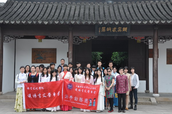 2014年5月19日,语言文化学院汉语言文学专业组织11级国学班全体学生身着中国传统服饰,赴苏州千灯古镇开展游学实践活动。专业主任黄毅,教师于晏如、王春晓参与活动并全程指导实践教学。 千灯古镇是百戏之祖昆曲的发源地,也是明末清初思想家顾炎武的故里。此地既有小桥流水的江南古韵,婉转如水的昆腔风雅,也有以天下为己任的精神内涵。本次活动依托《中国昆曲》、《美学基础》、《中华传统礼仪》、《中国佛教文化》等专业课程,将学生分为戏曲、诗会、讲解、摄影四个小组开展实践教学。 讲解组成员为全体师生提供相关景点的文化解说,摄影组成员则全程跟进,用镜头捕捉人文之美。师生们首先参观了佛教文化区,包括延福寺、秦峰塔、玉佛殿等。接着游览了昆曲鼻祖顾坚纪念馆,并在古戏台观摩了戏曲组成员的评弹和昆曲名段演出以及专业演员的《牡丹亭・游园惊梦》表演。最后参观了顾炎武故居、亭林墓、亭林祠和顾园,诗会组成员吟诵诗作并分享了对诗歌的审美体验。 此次活动是汉语言文学专业实践教学改革项目的重要内容,旨在继承孔孟先贤的教育传统,通过游学访胜提升学生的国学素养和文化传播能力。活动使学生巩固了专业知识、拓宽了文化视野,雅化了道德情操,是贯彻与落实学校“专、通、雅”教育理念的重要举措。(汉语言文学专业) | | |