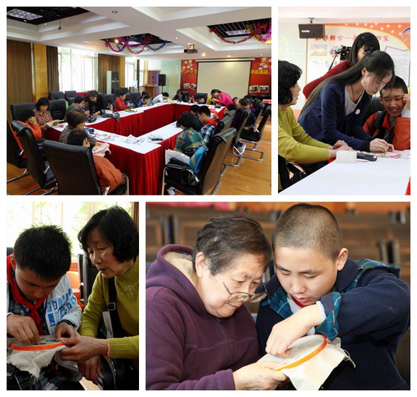 | 健康学院范冬梅老师本学期应邀在闵行区启智学校开设了一门特殊的艺术教育课程――手工刺绣。参与课程学习的有自闭症、脑瘫学生及学生家长。范冬梅老师向大家传授了花卉、水果、民俗人物等各类题材的刺绣针法。课上大多数学生皆能静下心来,或独立创作,或与家长合作,积极参与并完成一些简单作品。 | ||