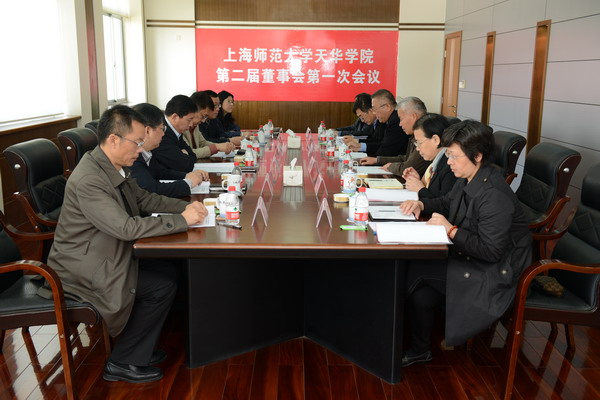 | 2014年4月24日,上海师范大学天华学院第一届董事会第11次会议和第二届董事会第1次会议先后在天华楼六楼会议室召开。5月4日,学校在明华楼五楼报告厅召开全校教职工干部大会。邹荣祥董事长宣读了董事会的相关决议。 | ||