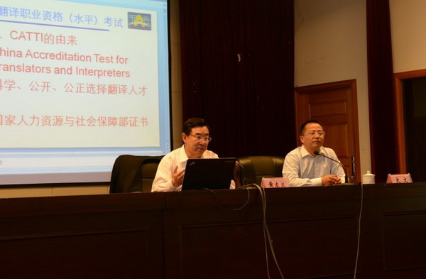 2014年5月8日,应我校语言文化学院的邀请,中国外文局副局长、中国翻译协会副会长黄友义莅临我校,作题为《全球化时代的翻译教育和中译外的基本训练》的学术讲座。讲座由天华学院副校长、语言文化学院院长史文主持,英语专业和汉语国际教育专业的师生聆听了本次讲座。 随着中国在世界舞台上的地位越来越重要,比任何时候都更加需要一支高水平的对外传播队伍。在这个大背景下,中国外文局副局长黄友义从翻译职业资格(水平)考试、翻译专业毕业生的就业出路以及中译外是通往世界桥梁三个方面展开了他的学术报告。 首先,黄友义先生具体介绍了翻译职业资格(水平)考试的由来、级别和特点。指出该考试是从翻译能力、文化知识以及实践能力等方面来检验译者的真实水平,科学、公平、公正地为国家选拔翻译人才。同时,他结合市场需求,阐明了翻译专业毕业生需要具备的能力以及就业的方向。之后,黄先生结合自己的翻译经历,运用大量的实例具体阐释了中译外翻译实践中存在的具体问题、处理方式和翻译技巧。最后,黄先生寄语天华师生“翻译的是文化,不是文字”,所以中译外没有捷径可走,译者不仅需要打好语言基础,而且也要充分了解国内外的不同文化特点。 通过这场深入浅出、风趣幽默的讲座,同学们不仅提高了了对专业学习的热情,同时对译者在跨文化交流中的使命和职业前景都有了明晰的认识。(语言文化学院) | | |