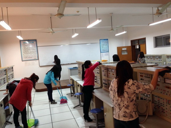 | 2014年4月25日,第十二期新党员培训班的预备党员一百余人以“服务身边”为主题在校园里进行实践活动。本次实践是根据党校部署而组织的一次党员教育主题活动,组织严谨,意义深远。预备党员分别在图书馆、电子电工实验室、物理实验室、琴房、画室及商务实训室等场所清理卫生,发挥先锋作用,尽一名共产党员应尽的责任与义务。(组织部) | ||
