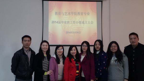 2014年3月24日下午,2014届教育专业毕业班工作小组成立大会在明华楼567举行,教育党总支书记沈晓燕担任组长,教育党总支副书记韩苏曼、刘洪伟担任副组长,全体10级正副辅导员为组员。会议由教育党总支书记沈晓燕老师主持。 沈晓燕老师指出就业工作是一项至关重要的工作,要求毕业班辅导员要有高度的责任感和热心,要深入了解就业过程的方方面面,把握就业规律,关心就业难点,坚持以学生为本,做好服务,把2014年的就业工作完成得更加圆满。会上对工作小组各成员的责任做了明确的分工。(沈洁) |