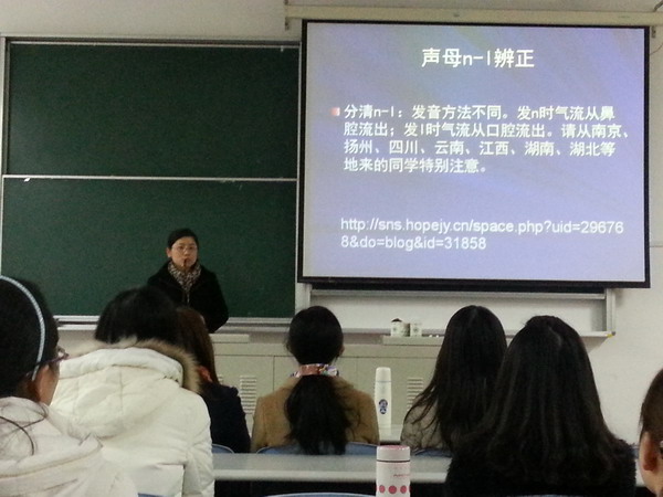 2014年3月14日,语言文化学院汉语国际教育专业在日华楼阶梯教室103举行考级考证学习交流会,教务处处长助理于美娟、汉语国际教育专业主任甘小明、党支部书记翁晓玲、分团委书记杨央出席了会议。 首先,甘老师重申了汉语国际教育专业获得学位的条件,强调了大学英语六级和普通话考试的重要性,希望同学们在学习中必须“端正态度、不存侥幸”。随后,于美娟老师就普通话测试角度对同学们进行了专业指导。接着,汉语国际教育专业的优秀学生代表分享了考级考证的成功经验。最后,翁晓玲老师总结发言。同学们表示通过本次大会收获了许多经验,对未来学习有很大的帮助。(语言文化学院) |