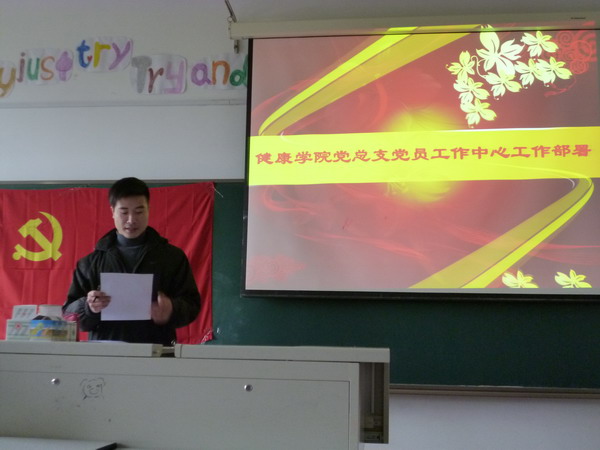 健康学院党总支于2014年2月25日和3月4日两次召开了党员工作中心新学期会议。健康学院党总支书记孙超、党总支副书记周建光、党支部书记黄璐,以及全体学生党员、入党积极分子出席了会议。 健康学院党总支书记孙超、副书记周建光分别在大会上对新学期党员工作中心的工作做出了部署,要求进一步完善中心制度,加强各部门独立运转能力,严格工作考评标准,并鼓励各部门通力协作,积极策划举办各类活动,打造具备一定战斗力、凝聚力和先进性的党员工作队伍,实现学生自管自律的要求和目标。(健康学院党总支) |