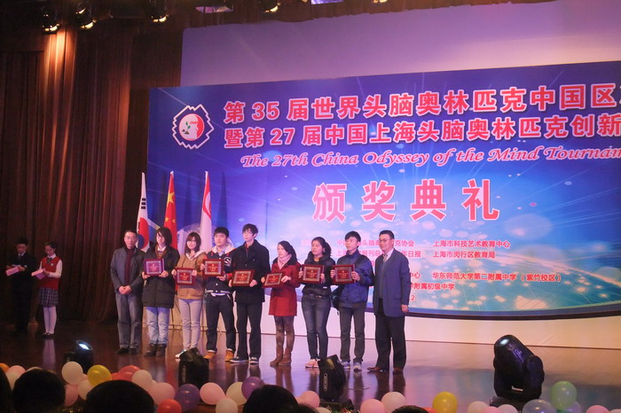 | 我校学生在第35届世界头脑奥林匹克中国区决赛中荣获两个全国一等奖(右二、右三)。中国工程院院士、上海头脑奥林匹克协会会长翁史烈、上海市教委副主任王平向获奖选手颁奖。其中工学院学生周传健、卓峰磊、王功宇、陈逸伦、范君怡、邓博宸以及语言文化学院学生梁帆组成的团队荣获《不同寻常的鬼屋》项目大学生组全国一等奖第一名,将代表中国赛区前往美国参加世界头脑奥林匹克全球总决赛。该团队由工学院林颖、潘晨骄老师指导,语言文化学院李匀老师、实习实训处马伟超老师也给予了大力支持。 | ||