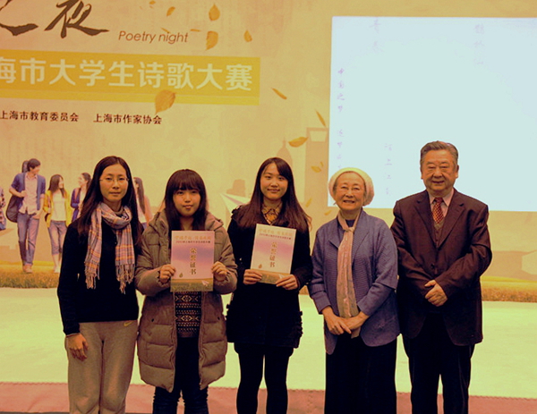 2013年12月28日,上海市大学生诗歌大赛颁奖典礼“诗歌之夜”在上海工程技术大学举行。来自全市23所高校的百余名大学生,与曹雷、过传忠、刘家桢等知名朗诵家、诗人、作家汇聚一堂,共诵中国梦,同咏校园情。由我校清吟诵读配音社选送的两位同学获奖,其中汉语言文学专业陈旭同学获得原创诗歌组三等奖,学前教育专业王天婕同学获得朗诵组三等奖。 清吟诵读配音社是由语言文化学院汉语言文学专业教师指导,面向全校有志参与吟诵活动、双语配音的学生社团。自2013年5月创社以来,已承办我校“2013中华诵”,并组织参与上海高校红色经典诵读大赛、上海市“中华梦,我的梦”诗歌大赛等比赛,在各项活动中获得佳绩。 本次大赛自2013年11月启动,原创大赛共收到400余首诗歌, 23所高校的64首诗歌进入决赛;朗诵大赛收到参赛作品120余件,16所高校的20个作品入围决赛。我校两位同学经过虞琪君老师的指导,在决赛中凭借优异的表现,彰显出天华学子的风采。 “中国梦想•诗意校园”2013季上海市大学生诗歌大赛由中共上海市教育卫生工作委员会、上海市教育委员会和上海市作家协会主办,旨在引领大学生思想文化主旋律,积聚大学校园团结奋进的正能量,鼓励大学生以创作、颂诗的形式抒发自己的中国梦想,以诗意的视角感悟校园生活。诵读经典,抒写诗文的创想与我校推动的经典导读活动相契合,旨在培养“专、通、雅”综合发展的大学生。(语言文化学院) |