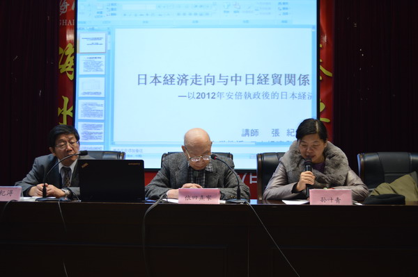 2013年12月15日晚,由语言文化学院主办的中日关系问题讲座在明华楼报告厅举行。日本早稻田大学名誉教授,著名历史学家依田熹家教授和日本城西大学研究生院院长张纪浔教授分别作了精彩报告,讲座由语言文化学院党总支书记孙叶青老师主持。 依田熹家,日本历史学家,1992年以论文《日本帝国主义与中国》获中国南开大学历史学博士学位。1966年以后,历任早稻田大学社会科学研究所助教、讲师、副教授、教授,同时兼任北京大学、复旦大学、南开大学、北京师范大学、同济大学、湖南大学和郑州大学的客座教授。作为近邻,一直以来中国与日本的关系错综复杂,既有历史纠葛,也有广泛合作。那么中日关系到底将何去何从?两国国民又如何看待中日问题呢?对此,依田熹家教授进行了详细的分析,展现了一个日本人眼中的中日关系。 随后,张纪浔教授围绕“日中贸易经济的现状与对策”这一主题,精辟阐述了中日贸易交流的特点与方式、日中在贸易交往上相互依存的密切关系以及贸易中日中双方投资结构的差异、现状与未来发展走向等问题,并提出了自己独到而精辟的见解。张纪浔教授,多年从事中日贸易理论研究和实践。原为北京对外经济贸易大学教师,1990年毕业于东京经济大学获经济学博士学位,现任日本城西大学研究生院院长。兼任北京对外经济贸易大学国际经济研究院名誉院长、中国世界经济学会理事、日中交流中心理事和南开大学、复旦大学、上海交通大学客座教授。张教授的报告理论深刻,深入浅出,通俗易懂,非常精彩。(语言文化学院) |