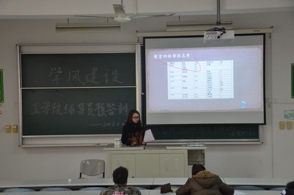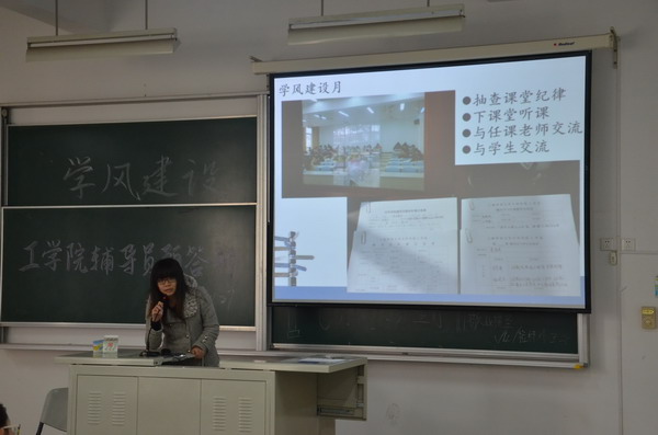 工学院响应学保处学风建设月活动宗旨,检查学风建设月辅导员工作效果,于2013年11月27日上午在日阶305,组织召开辅导员学风建设月预答辩会。工学院党总支书记刘香连、总支副书记王慧荣、赵科出席并担任评委,全体正副辅导员出席会议。 8名辅导员依次根据本月学风建设期间的工作情况及成效进行了答辩,历时两个半小时。通过答辩可以看出,辅导员用行动积极落实学风建设月的指导思想,精心准备,措施多样,工作卓有成效。针对工作中存在的不足,在每位辅导员答辩后,答辩评委均针对工作汇报情况提出整改意见和建议,鼓励辅导员要善于开动脑筋、工作汇报要突出重点和亮点,强调下课堂、重考级、关注重点学生,要有措施、有干劲,通过真抓实干,切实提高学风,并以制度化措施巩固学风建设月的成果。 此次预答辩会旨在明确各班辅导员学风建设情况,督促辅导员开展学风建设工作总结,检查问题,交流经验,为之后学院辅导员答辩做好充分准备。(金玫) |