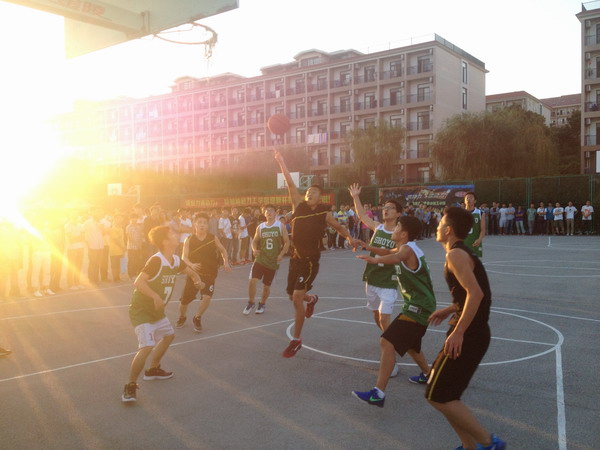 2013年10月13日,工学院 “迎新杯”篮球挑战赛于16点20分在小足球场开幕。篮球赛增强了同学的凝聚力,展示出新时代大学生的蓬勃朝气和竞技热情。(工学院)