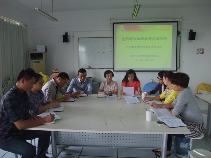 2013年10月10日上午,教育艺术学院教育党总支在明华楼442手工教室召开了党的群众路线教育实践活动工作推进暨党总支民主生活会。党总支、支部正副书记沈晓燕、韩苏曼、刘洪伟、吴启源、康淼、沈洁、章双喜参加会议。分管教育艺术学院学生管理工作的党委书记助理凌琦、教育分团委书记朱可也列席参加。会议由教育党总支书记沈晓燕老师主持。 根据学校党委的要求,会议选举成立教育党总支委员会,沈洁任组织委员,章双喜任宣传委员,吴启源任纪检委员,康淼任档案委员,颜银树任党务秘书。会上布置了下阶段本总支开展群众路线实践活动的具体措施和要求,指出各个支部、学生管理部门要根据党委要求创新活动方式。会议强调作为党组织的一个最重要的职责发展学生党员工作,一定要做到规范化、严格化,原有的入党积极分子选举制度还要坚定不移地执行下去,并且在发展党员、预备党员转正方面,还要继续严格地执行各项考核制度,督促学生党员、积极分子在各方面都能起到模范带头作用。会上,就在落实群众路线方针方面,党总支开展批评与自我批评,总支正副书记、各支部正副书记对自己的工作进行了反思并提出了很多自我改进的想法。 党委书记助理凌琦作总结发言,指出今后在工作中,正副书记、正副辅导员一定要齐心协力,要深入学生群体,注意自己的工作方法,以柔克刚,真正将党的群众路线工作方法落实到实处,为学校的建设作出贡献。(沈洁) |