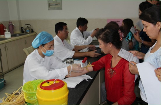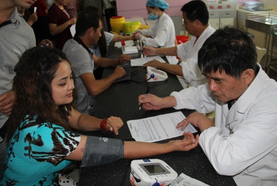 2013年9月17日,新疆培训学员前往嘉定中心医院体检中心进行体检。根据新疆培训项目实习工作计划安排,所有学员均要进行体检,为学员前往实习单位实习做好准备。(新疆培训项目办公室 王晓亮) |