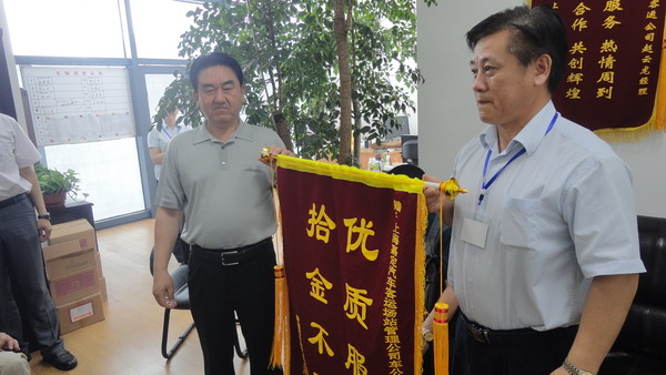 新疆培训项目第一批学员经过一学期的校外实习培训,已于6月13日正式结束。在实习培训的过程中,为感谢上海嘉定汽车客运场站管理有限公司一车公司(简称一车公司),每个工作日派出6辆大客车接送学员往返于学校和实习单位之,确保了培训学员的路途安全。6月17日,在新疆领队麦麦提阿尤甫和培训项目管理办公室刘洪伟老师的带领下,新疆培训项目的工作人员和全体学员向一车公司送上锦旗表示衷心的感谢,希望下学期继续合作,确保培训实习工作圆满结束。(新疆培训项目办公室 杨荻) |