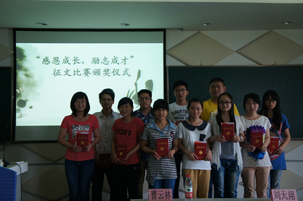 | 2013年6月5日中午12:15,学保处在明华楼五楼演播厅隆重举行“感恩成长,励志成才”征文比赛颁奖仪式,党委副书记、学保处处长曹云林,学保处副处长刘天翔出席会议,学生资助管理中心主任王慧荣主持。(学保处) | ||