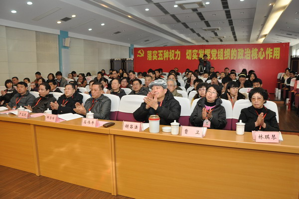 2013年1月15日下午,中共上海师范大学天华学院委员会在明华楼五楼报告厅召开换届选举党员代表大会。市教卫党委副秘书长曹荣瑞,市民办高校党工委专职组织员尹福会,大会主席团常务委员郭天成、邹荣庚、韩晓玉、龚春蕾等同志在主席台就座,董事长邹荣祥、院长石伟平等嘉宾参加会议。邹荣庚同志主持。 |
