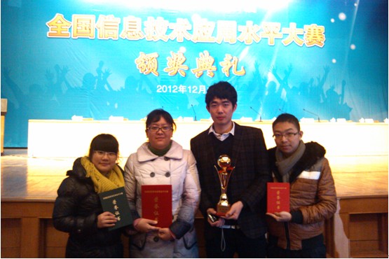 | 2012年12月18日,第七届“中国航信杯”全国信息技术应用水平大赛在北京大学百年纪念讲堂圆满落下帷幕。我院实习实训处副处长符跃鸣、机械系教师何燕带领机械工程系学生黄鑫、闻佳和蔚巍组成的代表队参赛,荣获“电气控制应用设计大赛全国一等奖”。 | ||
